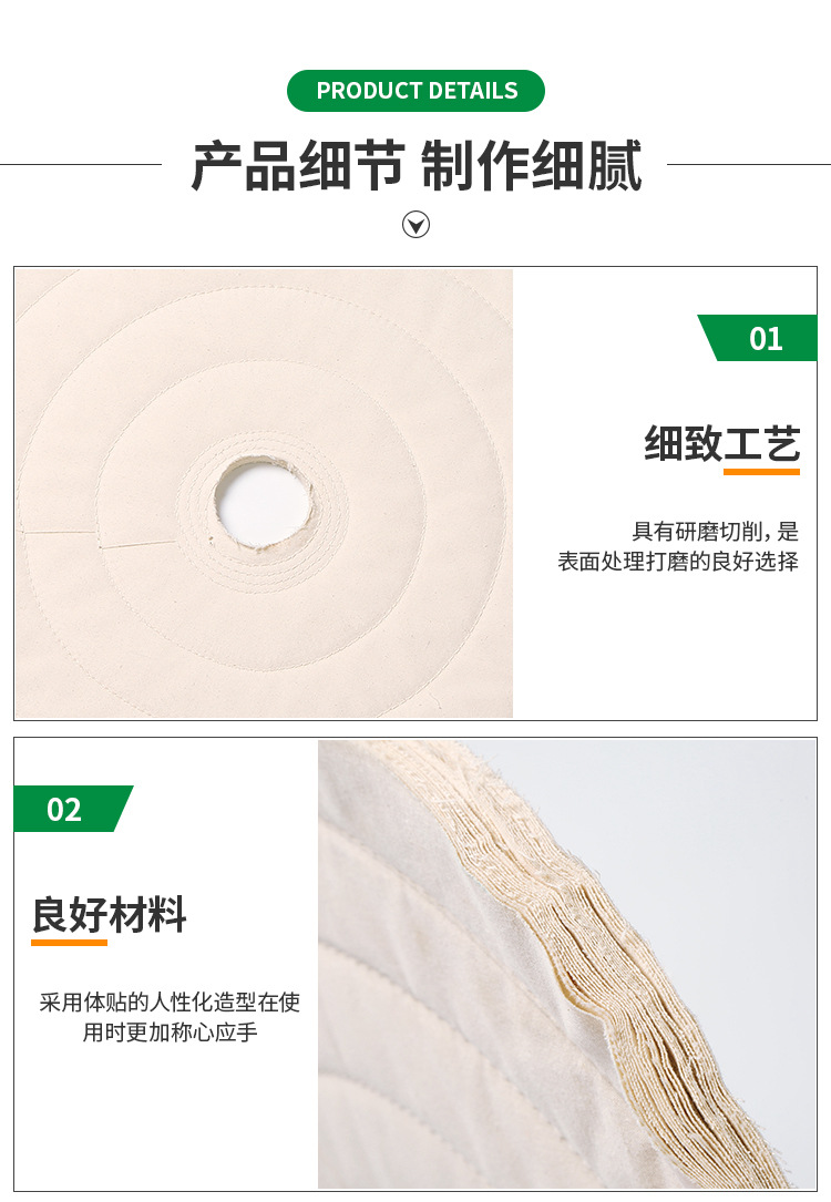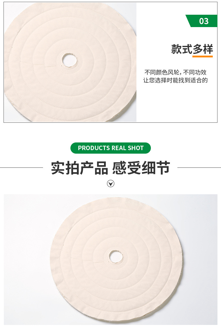 1)非縫合式整布輪。多用細軟棉布制成,宜拋光形狀復雜工件,或用于小型工件的精拋光。
