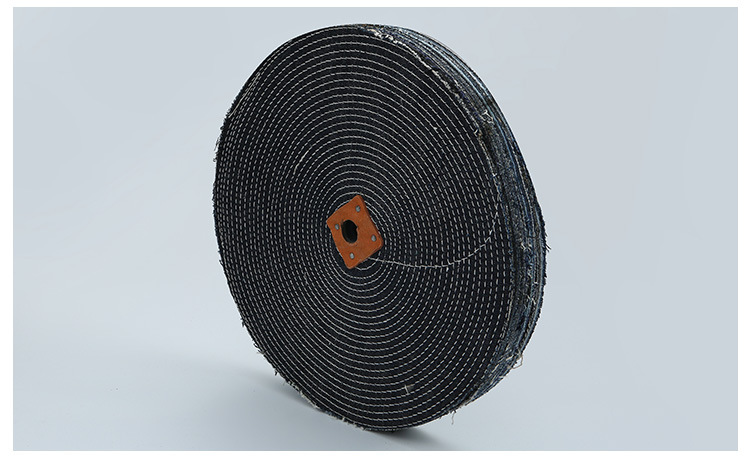 3)風(fēng)冷布輪。采用45度角線裁法,呈環(huán)形皺褶狀,中間裝有金屬圓盤,具有通風(fēng)散熱的特點,宜拋光大型工件。